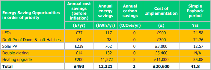 In total, our audit identified the potential to halve bills and carbon emissions through the introduction of air-conditioning, supported by some fabric improvements and solar PV.